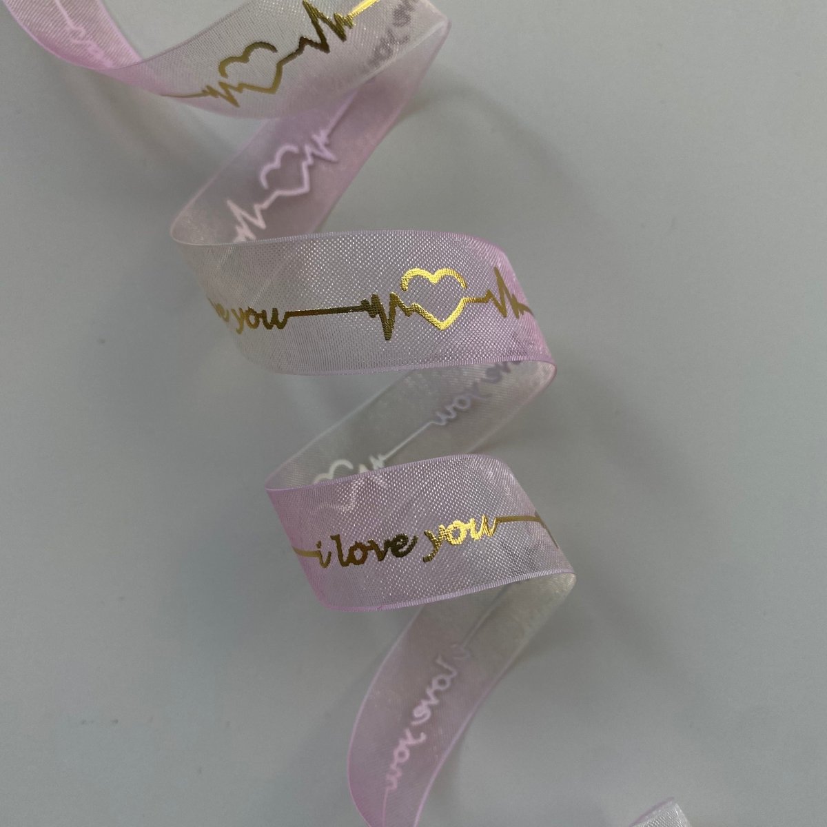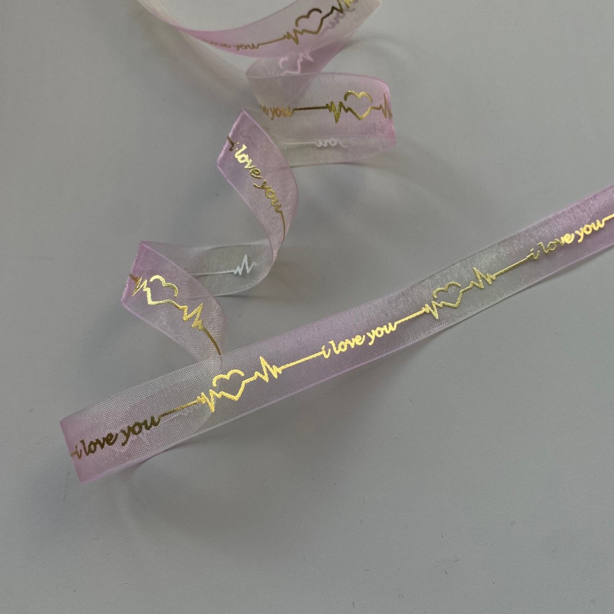 Elevate your Valentine’s Day and wedding details with our custom organza ribbon, beautifully finished with hot stamping gold text or icons. Crafted from sheer, lightweight organza, this ribbon adds an airy elegance while the metallic gold foil creates a luxurious contrast that catches the light from every angle.